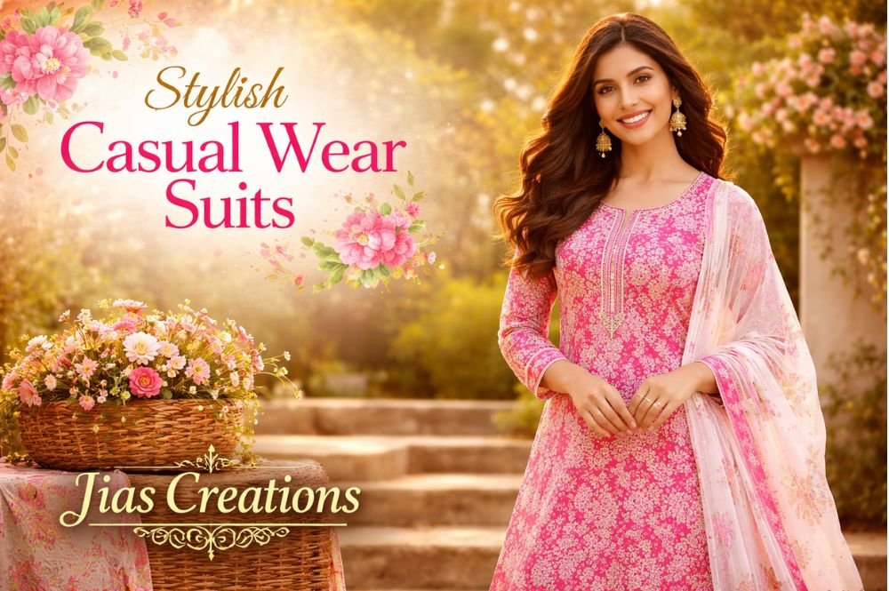 At Jias Creations, we offer a wide range of ladies suits designed with high-quality fabrics, beautiful patterns, and fine stitching. Our collection includes casual wear, festive wear, and party wear suits that are perfect for every occasion. We carefully select designs that match the latest fashion trends while maintaining the charm of ethnic wear.